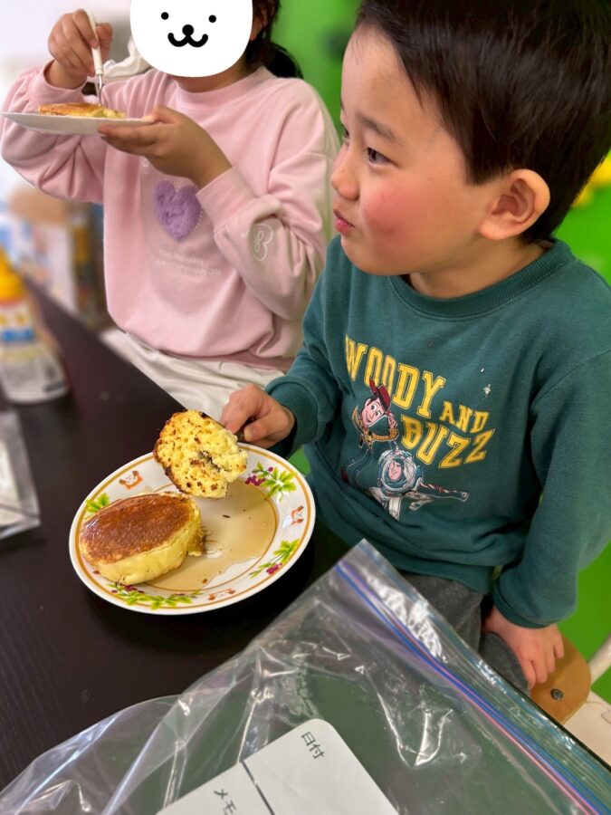 ふわふわのホットケーキに目を輝かせる子どもたちでした🤩