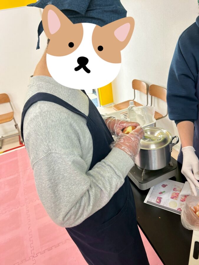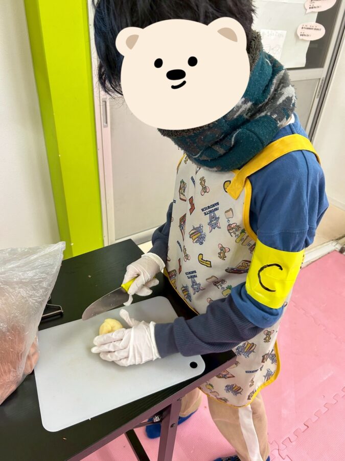 中にはピーラー初挑戦のお友だちもおり、包丁等に気を付けながら切ることが出来ています👀