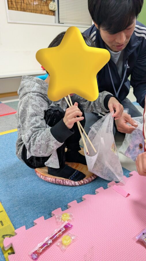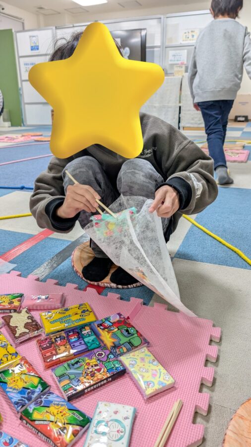 紙玉を叩いて壊して中に入っているお菓子を取り出すゲームとなっています♪