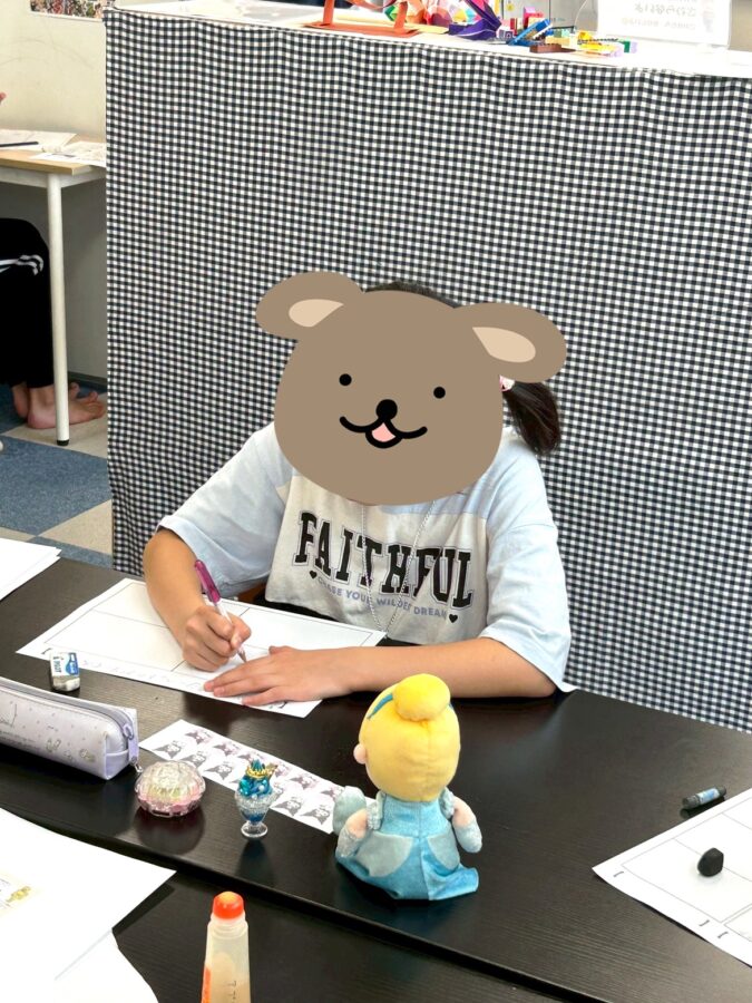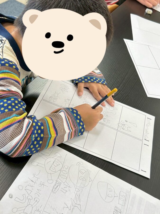 真剣に描き進めるお友だちや「どんなお話にしようかな~!」とワクワクしながら