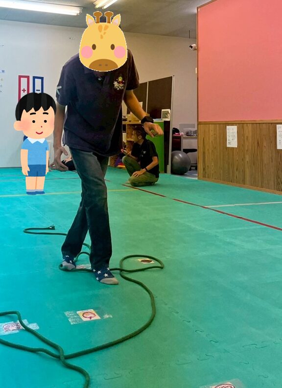 ロープの周りにはお顔のイラストを貼って、落ちたら食べられちゃう😃😃という設定を設けました!
